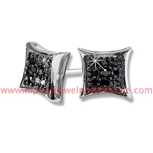 3x3 Deep Kite Black CZ Micro Pave Earrings .925 Silver