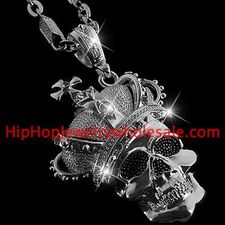 HC1068s Skull King Crown Pendant Silver 30in Chain